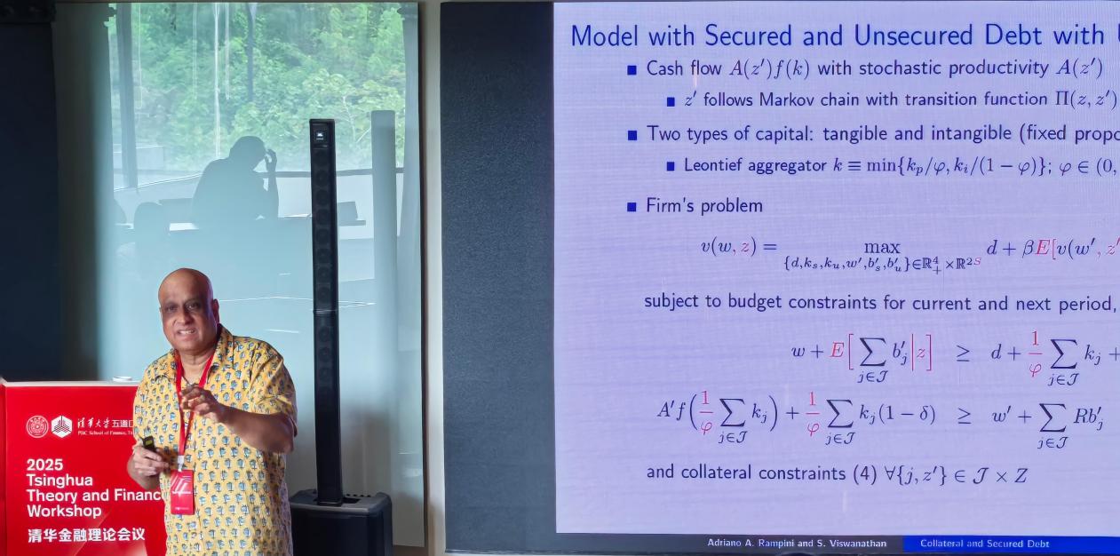 F.M. Kirby投资银行讲席教授S. "Vish" Viswanathan发表题为“抵押品与担保债务(Collateral and Secured Debt)”的主旨演讲,探讨抵押品如何影响企业在有担保与无担保融资之间的选择及资本结构的动态演变。不同于将抵押品简单等同于有担保债务的传统理解,他强调从经济学角度看,抵押品是“促进执行的可抵押资产”,因此不仅支撑有担保债务,也通过未设定担保的资产对无担保债务形成“隐性约束”。在其动态模型中,有担保债务通过对特定资产设置显性抵押强化债权人执行力、提升可借额度,但同时带来设定担保的成本。基于这一模型,Viswanathan 教授提出企业的债务结构会随财务约束而内生调整——约束更强时更依赖租赁与有担保债务,净值改善后逐步转向无担保融资,呈现“租赁→有担保→无担保”的融资路径;评级下调冲击的因果森林证据也表明,下调后企业会显著增加有担保债务,且该效应在更受约束的企业中更为明显。