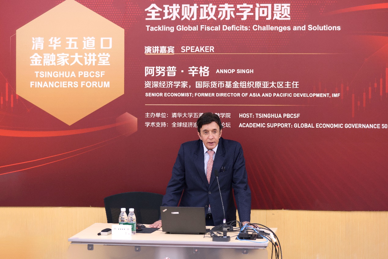 在主题演讲环节,阿努普指出,当前全球经济增长重心正从对外贸易向内需转移,各国政府愈发倾向于借助扩张性财政政策实现各类经济目标,这使得财政赤字呈现持续上升态势。与此同时,全球公共债务已处于历史最高水平,且IMF等众多机构预测未来五年公共债务增速还将继续攀升。因此,探讨解决全球财政赤字问题的重要性与紧迫性日益凸显。他强调,财政赤字并非少数国家的专属问题,而是全球性难题。中国、美国等重要经济体的广义政府债务占GDP比例均处于历史高位,四分之一的新兴市场国家面临债务困境风险,某些国家的偿债能力已开始出现问题。