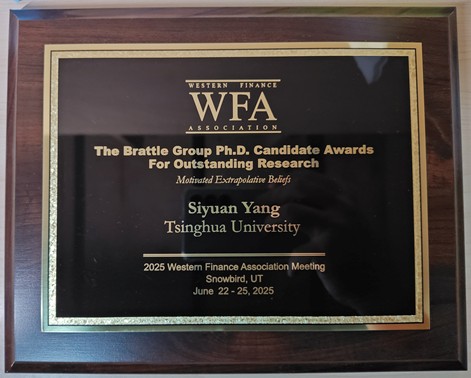 2020级博士生杨思远独作论文《Motivated Extrapolative Beliefs》入选并获The Brattle Group Ph.D. Candidate Awards For Outstanding Research。